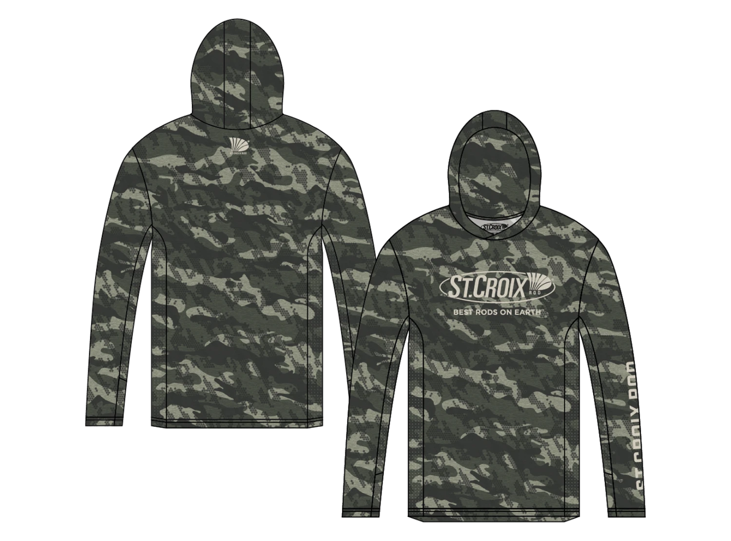 Take your fishing apparel to the next level with this all new camo performance hooded long sleeve! Made of 90% polyester 10% Spandex for all-day comfort! Technical features include s UPF 50+ , Side Mesh Panels, Stain Resistant, Moisture Wicking and Anti-microbial performance fabric.