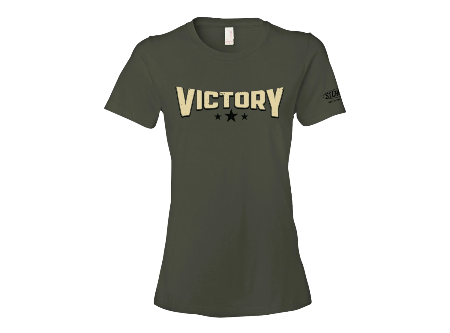 Victory is here! This ladies short sleeve tee is semi-fitted and made of 4.3oz, 100% combed ringspun cotton fabric.
