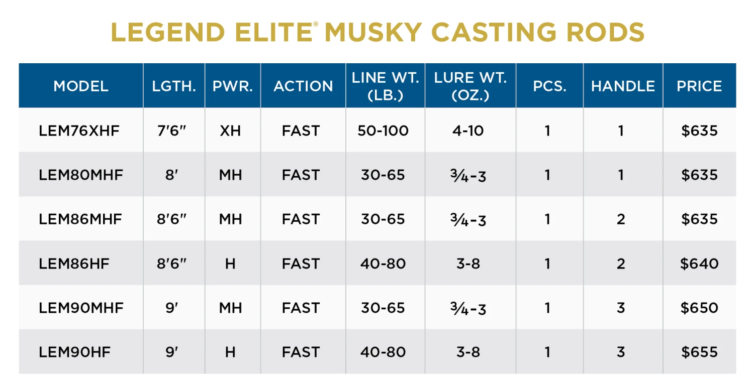 Simply a must-have for an avid musky angler. Featuring exclusive St. Croix technologies, advanced blank designs and superior components, the Legend Elite® Musky series pushes performance to unprecedented levels.