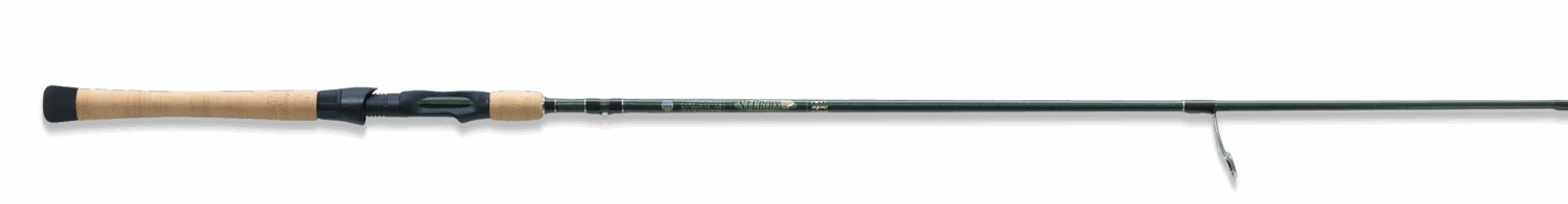 - Fuji® TVS blank-touch reel seat with built-in hood on spinning rods.