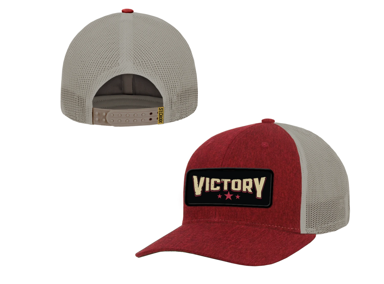 The all new Victory cap is here! This high-profile, structured cap features a unique heather red front and a double row snap back closure!